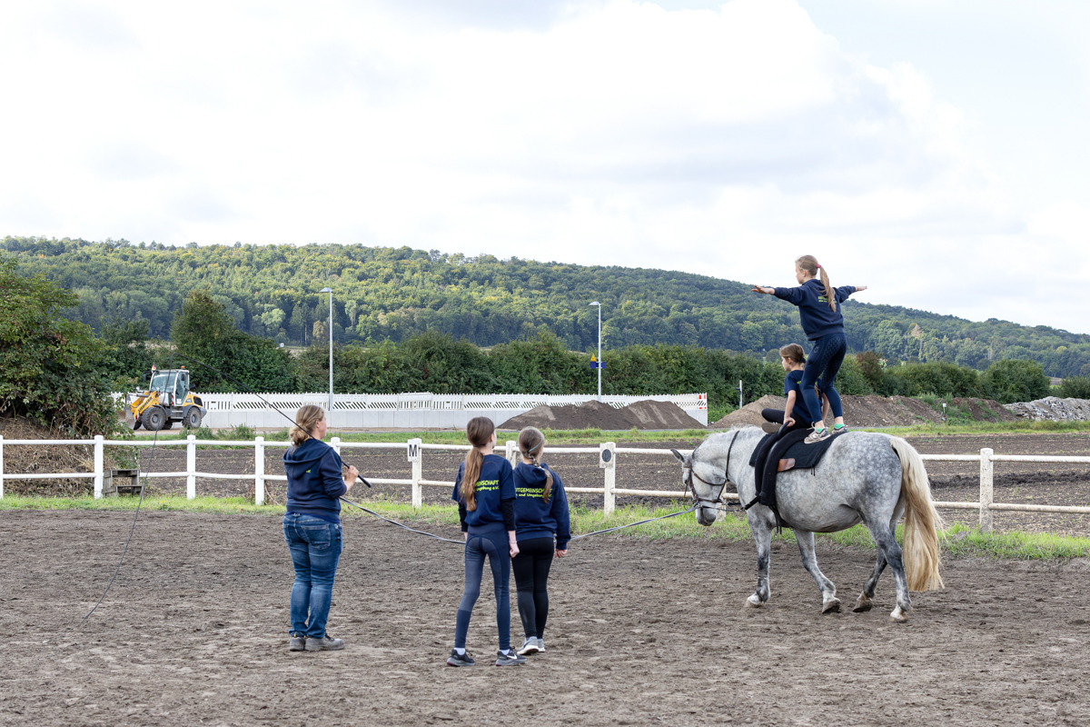 Gestartet wurde auf dem großen Reitplatz mit unseren geübten Reitkindern, die den Zuschauern ein beeindruckendes Showprogramm boten, bevor es dann zur großen Freude der Kinder bei der Stallrally auf Erkundungstour ging. Von 11.00 -15.00 Uhr leuchteten überall Kinderaugen, der Pferdesport hat mit Sicherheit an diesem Tag neue Anhänger gefunden. Zur Belohnung gab es für jedes Kind ein Freundschaftsbändchen und eine Urkunde.