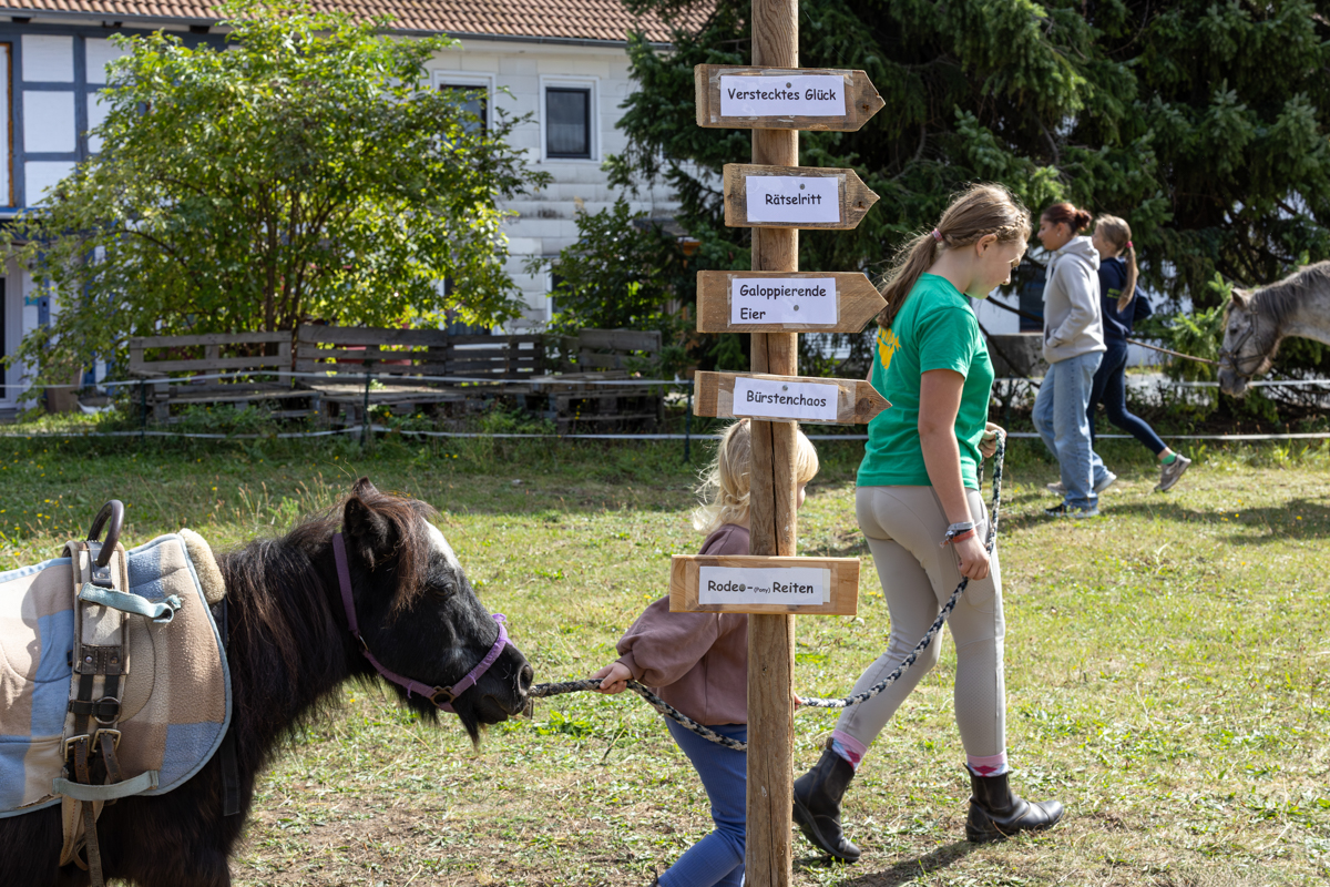 Mit dabei waren: Team „Blind ins Bürstenchaos“, Team „Pony Disco“, Team „Rodeo- (Pony-) Reiten“, Team „Rätselritt“, Team „Verstecktes Glück“, Team „Galoppierende Eier“ und Team „Hoppeldihopp Parcours“.