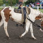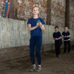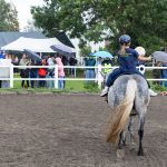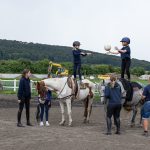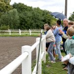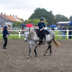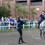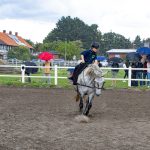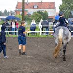 Am Tag der Vorstellung zeigte sich das Wetter nicht ganz so beständig, ein heftiger Regenschauer führte dazu, dass die Vorstellung kurz nach Beginn in die Reithalle verlegt werden musste. Für Jani und ihrem Team, die alles richtig gut im Griff hatten, war das kein Problem. Der Hallenboden wurde schnell befeuchtet und schon ging es weiter mit der spannenden Show.