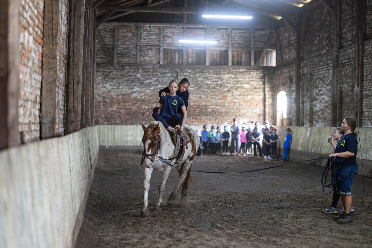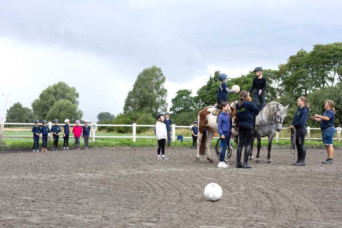 Am Montag, den 28.07.2025 wurde es morgens wuselig auf dem Hof, alle Kinder mussten sich erst einmal sortieren, um dann gemeinsam in eine spannende und aufregende Woche mit Jani und ihrem Trainerteam zu starten. Unsere Vierbeiner wurden begrüßt und geputzt und dann ging es auch schon los mit der Ideensammlung, was man alles gemeinsam so auf die Beine stellen könnte.