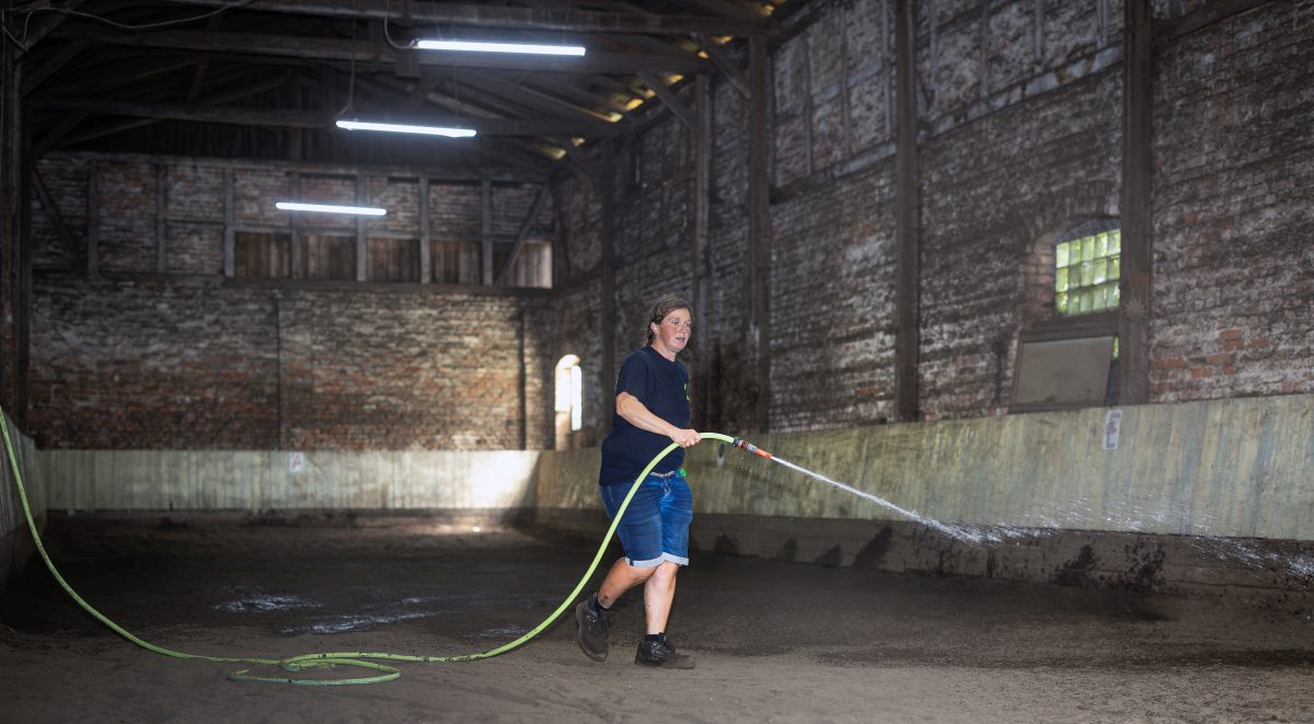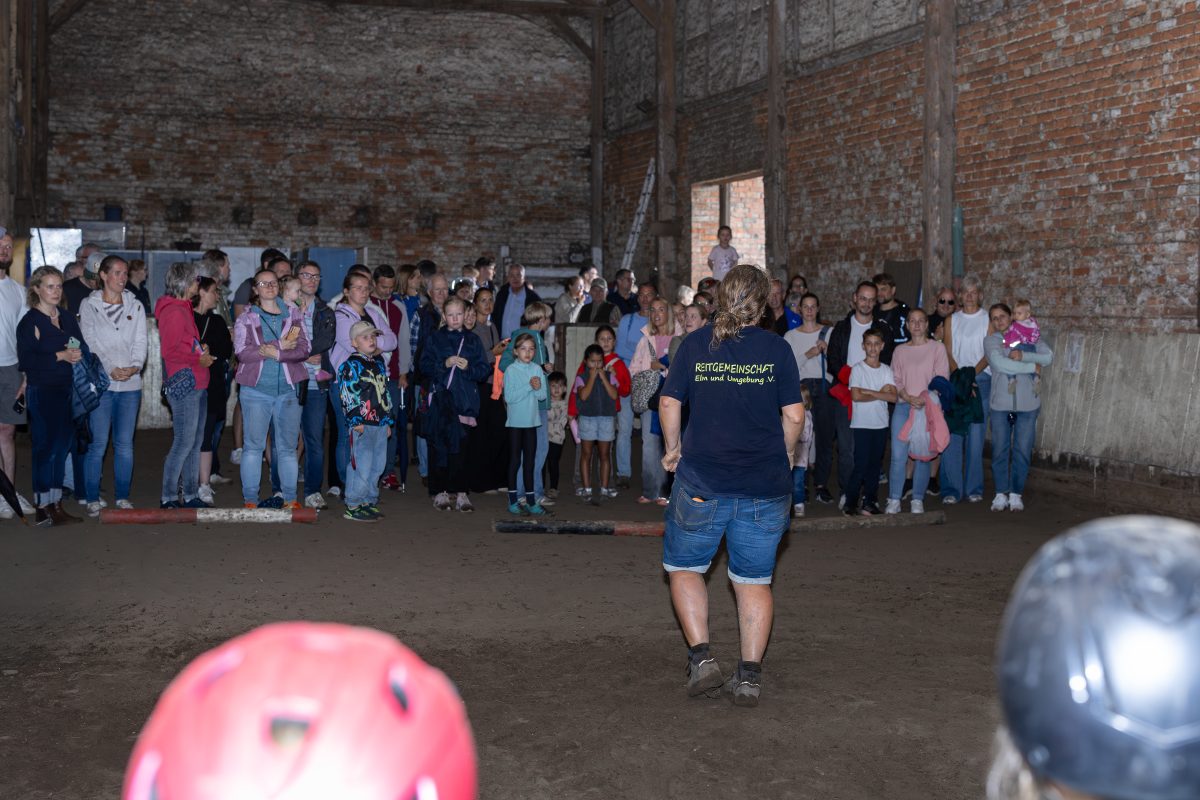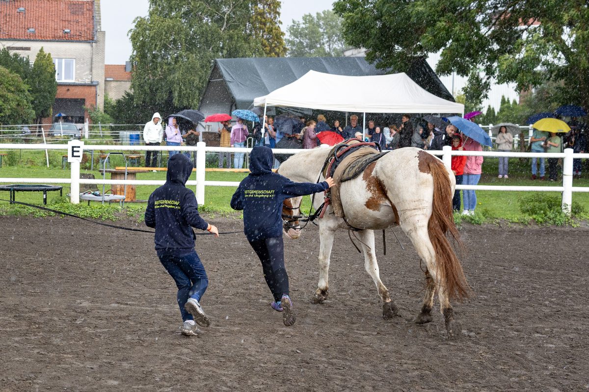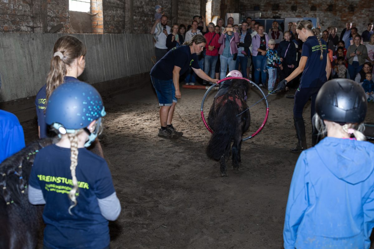 Aufgrund eines Regenschauers wurde die Vorstellung in die Reithalle verlegt.